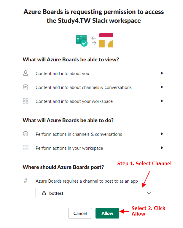 Step 4. 選擇要加入的 Channel > 點選 Allow
