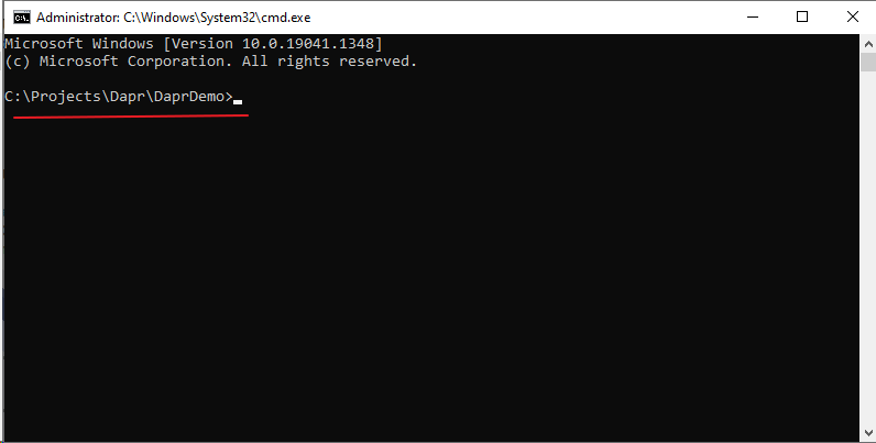 步驟 11. 接下來啟動 DaprClientDemo,開啟另一個命令提示字元,切換到相同目錄,輸入下列指令